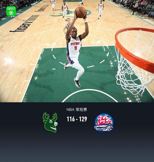 第四節(jié)雄鹿萊恩-羅林斯拿下10分,活塞坎寧安拿下7分,最終雄鹿116-129不敵活塞
