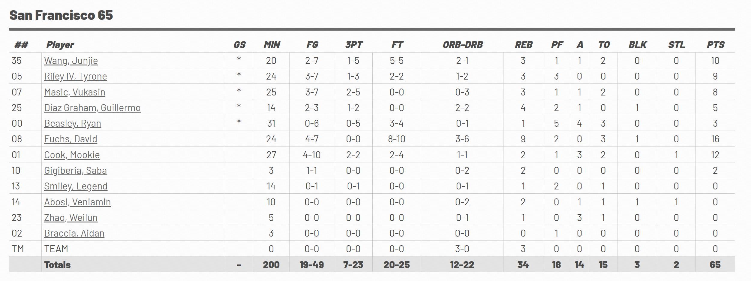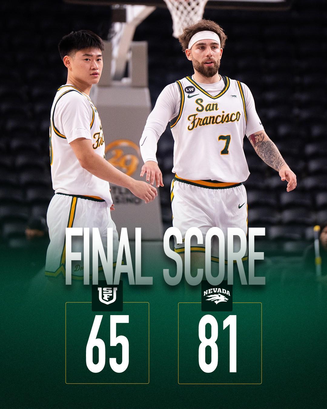 北京時間11月29日,NCAA常規(guī)賽,舊金山大學65-81不敵內(nèi)華達大學。