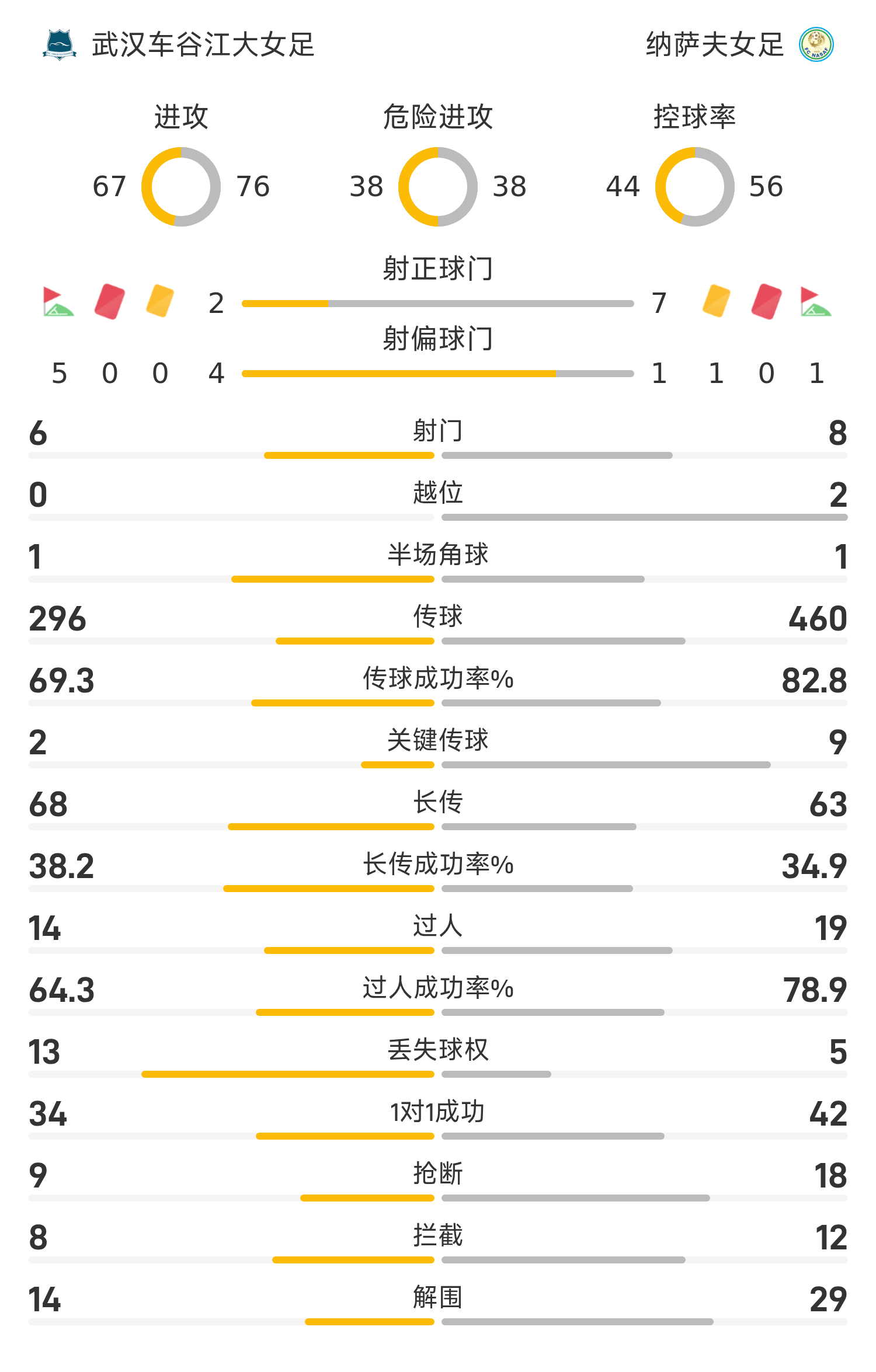 雷速體育11月17日訊 25/26賽季女亞冠聯(lián)小組賽B組第1輪,武漢車(chē)谷江大女足1-1戰(zhàn)平納薩夫女足。王霜、姚偉等主力因全運(yùn)缺席。全場(chǎng)比賽,馬君第6分鐘錯(cuò)失點(diǎn)球首開(kāi)記錄良機(jī),亞當(dāng)斯自擺烏龍幫助武漢女足領(lǐng)先,隨后庫(kù)德拉托娃破門(mén)扳平。全場(chǎng)比賽兩隊(duì)1-1戰(zhàn)平,武漢女足無(wú)緣亞冠開(kāi)門(mén)紅。