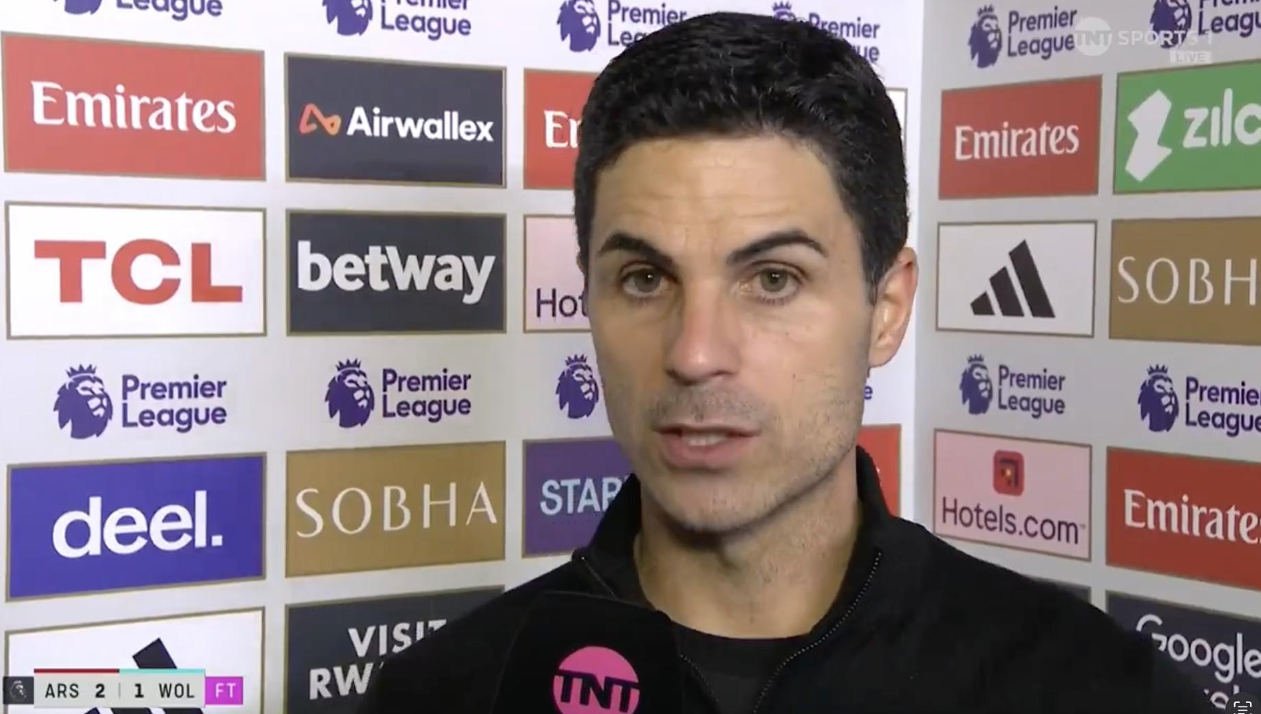 英超第16輪,阿森納主場(chǎng)2-1擊敗狼隊(duì),賽后,槍手主帥阿爾特塔接受了TNT體育的采訪。