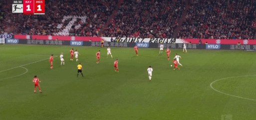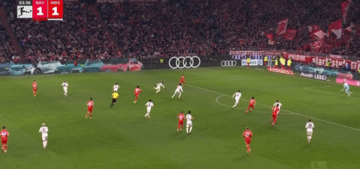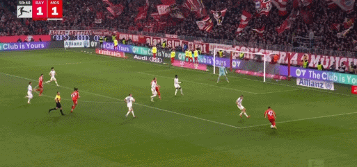 第29分鐘,格納布里送助攻,卡爾破門,拜仁1-0美因茨