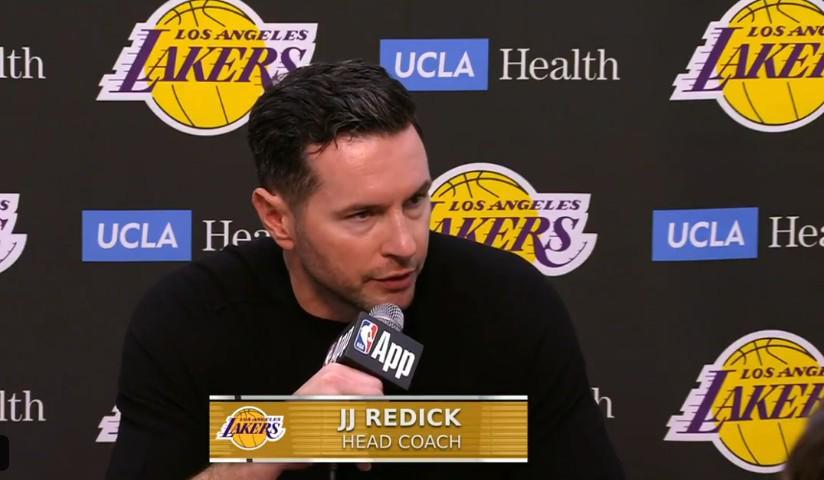 比賽最后時(shí)刻,湖人曾因狄龍-布魯克斯撞擊詹姆斯而獲得1次技術(shù)罰球,最終詹姆斯執(zhí)行了這次關(guān)鍵的罰球但沒(méi)有命中。賽后,湖人主帥雷迪克接受了采訪談到了這一回合。
