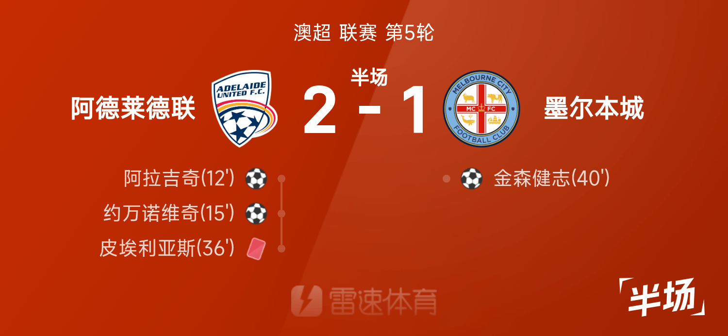 雷速體育11月21日訊 25/26賽季澳超聯(lián)賽第5輪,阿德萊德聯(lián)迎戰(zhàn)墨爾本城。