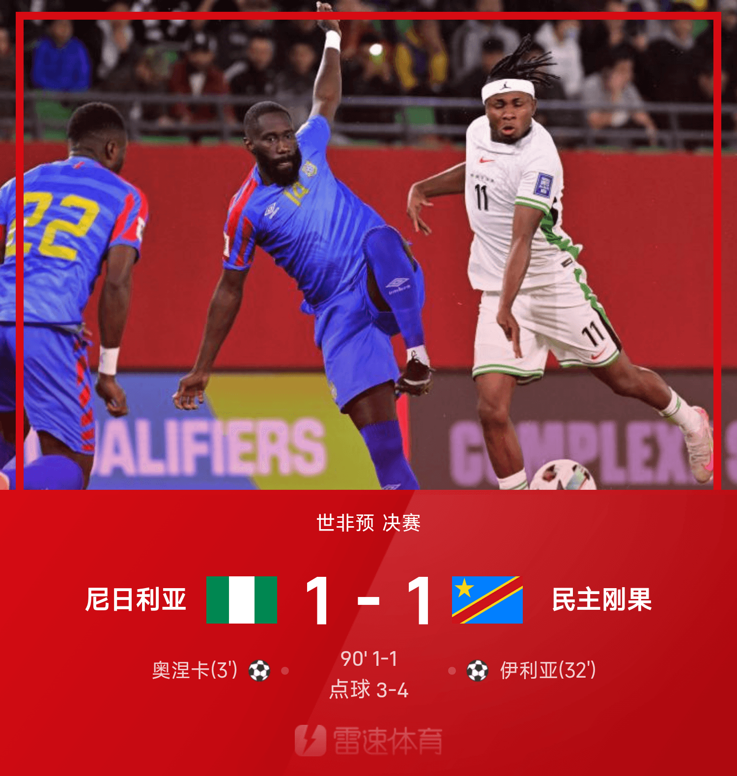 世非預戰(zhàn)報:尼日利亞點球3-4不敵民主剛果,無緣世界杯