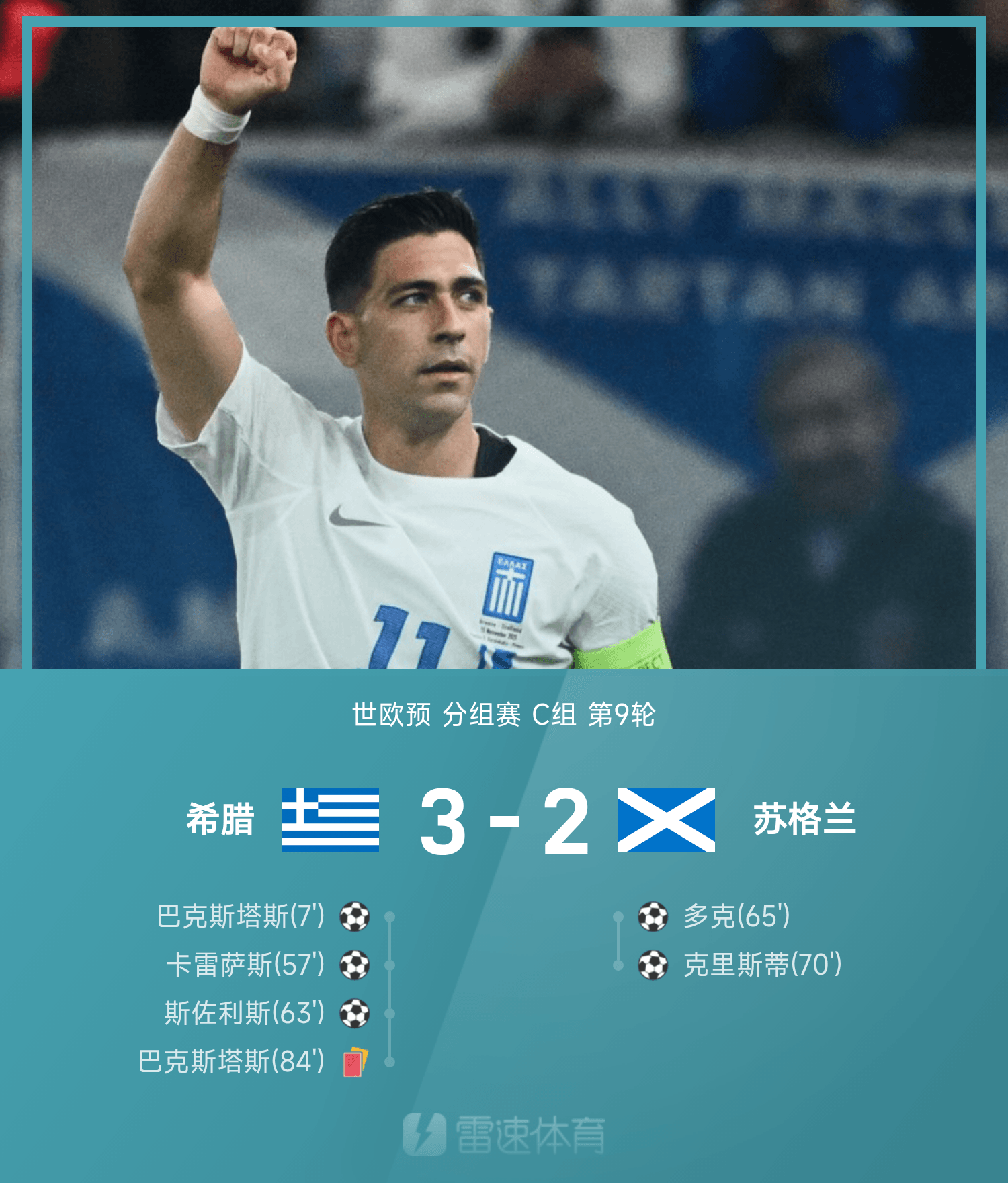 世歐預(yù)戰(zhàn)報:巴克斯塔斯破門+染紅,十人希臘3-2蘇格蘭