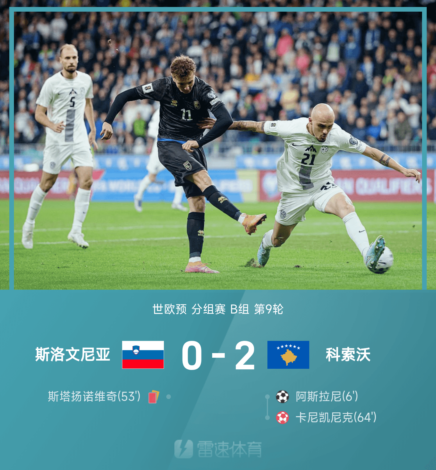 雷速體育11月16日訊 26賽季世歐預(yù)分組賽B組第9輪,科索沃2-0戰(zhàn)勝斯洛文尼亞。