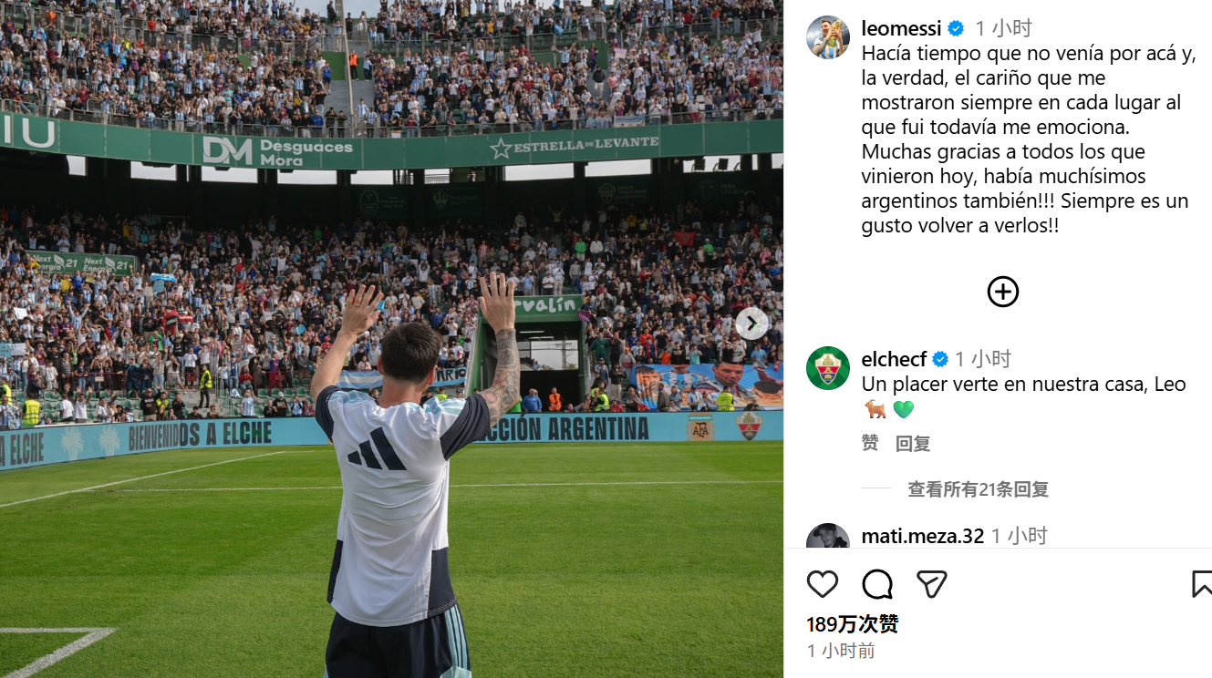 雷速體育11月13日訊 梅西更新社媒,感謝了眾多球迷觀看他在阿根廷隊的訓練。