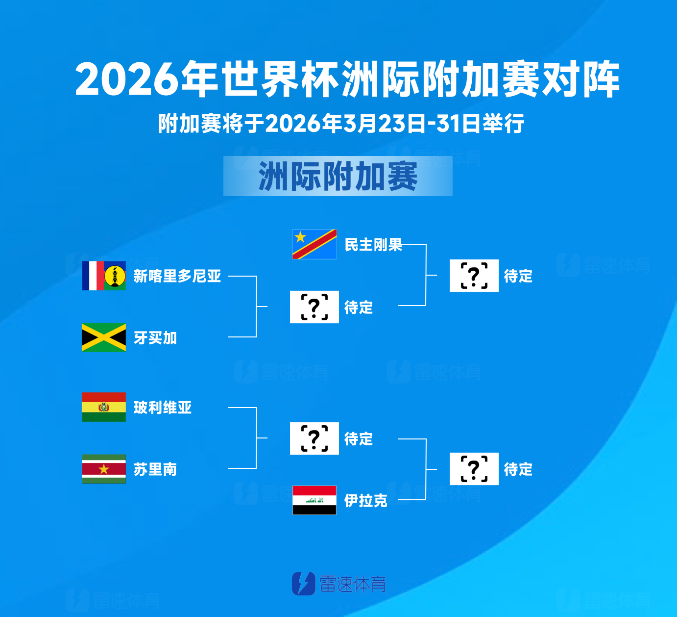 2026世界杯洲際附加賽抽簽:伊拉克vs蘇里南/玻利維亞勝者