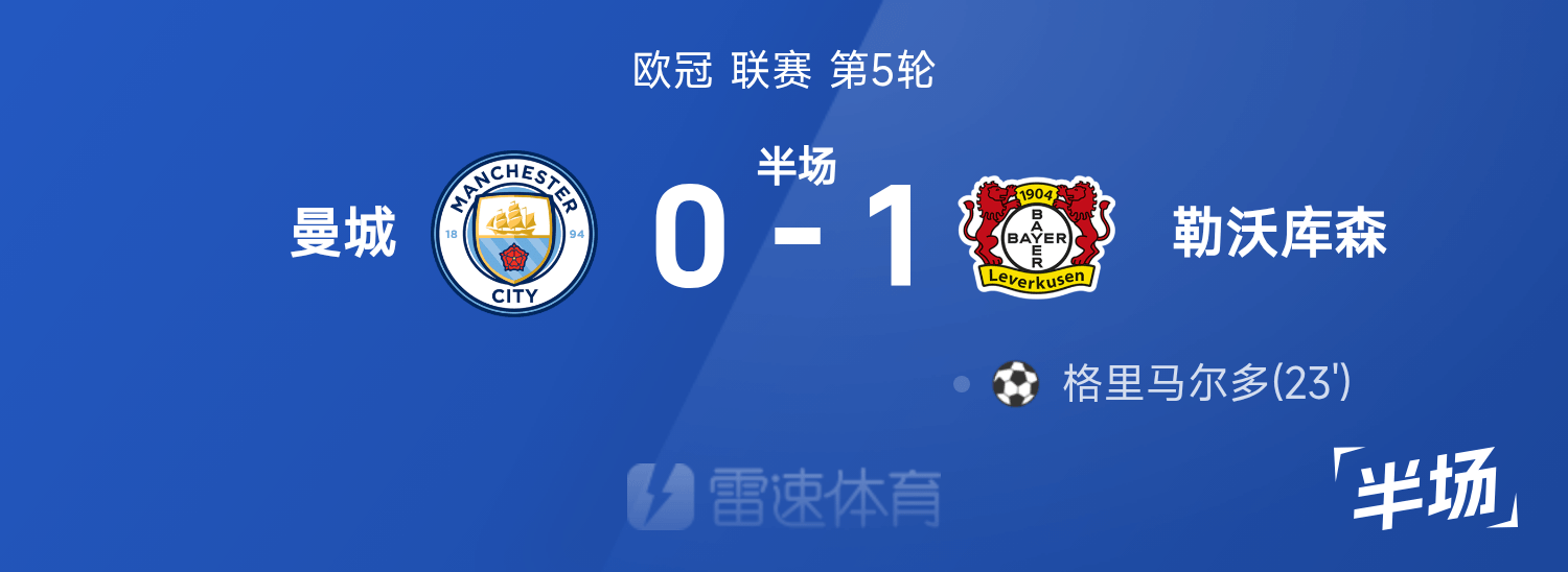 雷速體育11月26日訊 25/26賽季歐冠聯(lián)賽第5輪,曼城迎戰(zhàn)勒沃庫森。