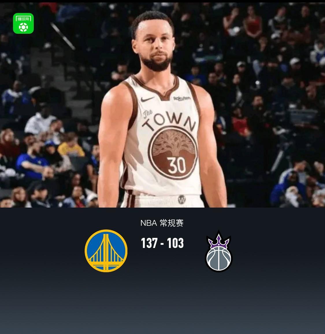 勇士137-103大勝?lài)?guó)王,庫(kù)里27+10,德羅贊空砍24分