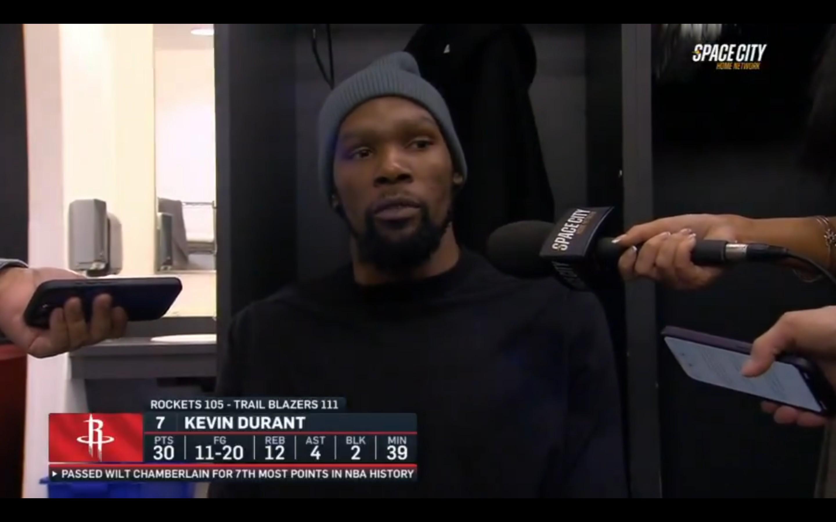 杜蘭特談超越張伯倫:波特蘭是有風(fēng)度的城市,他們?cè)谀且豢陶J(rèn)可了我