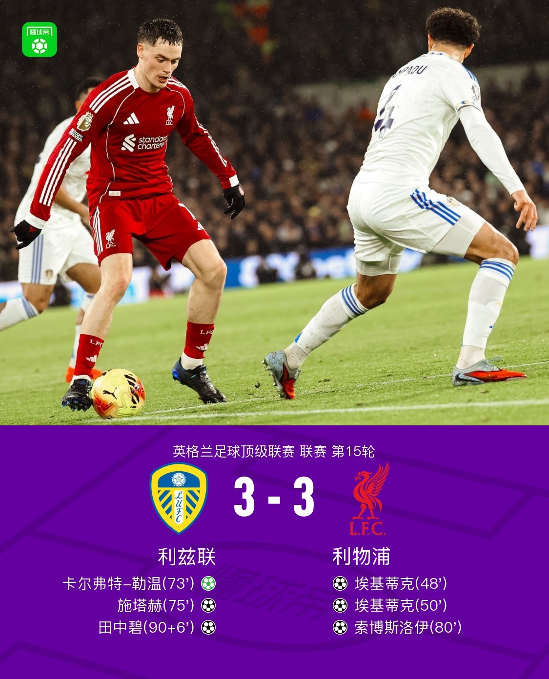 劍南春|利物浦客場3-3利茲聯(lián),田中碧補(bǔ)時絕平,埃基蒂克雙響