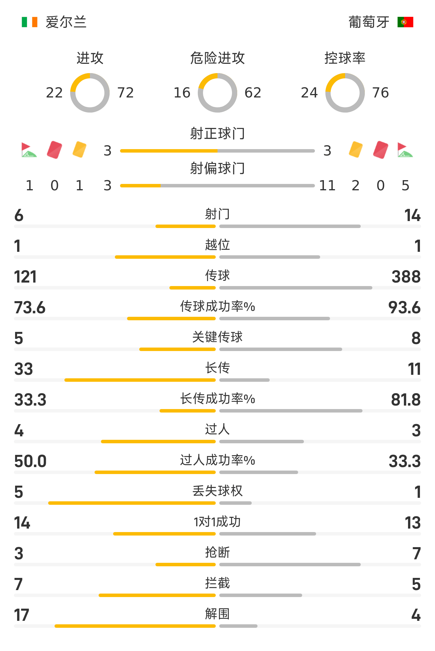 45’帕洛特帶球突入禁區(qū)內(nèi)切射門命中,愛爾蘭2-0葡萄牙