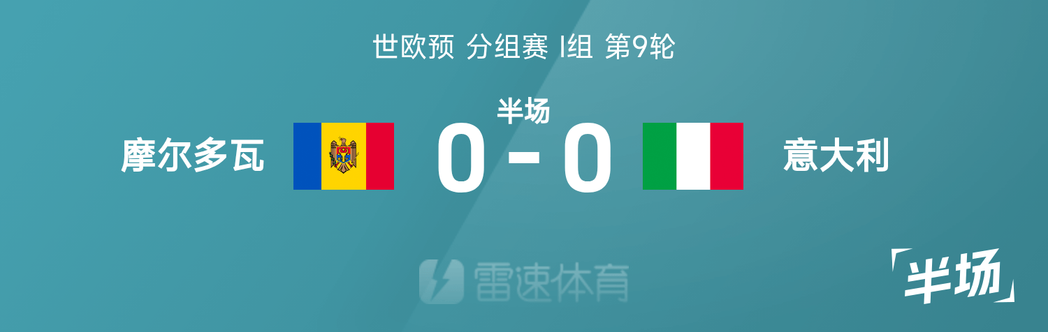 雷速體育11月14日訊 26賽季世歐預分組賽I組第9輪,摩爾多瓦迎戰(zhàn)意大利。半場戰(zhàn)罷,雙方比分暫為摩爾多瓦0-0意大利。