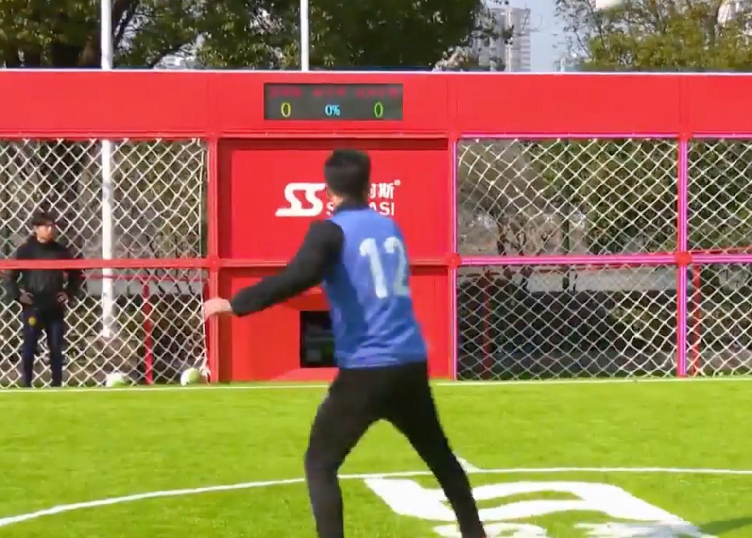 在實(shí)驗(yàn)室的智慧球場(chǎng),發(fā)球機(jī)可以精準(zhǔn)地發(fā)出不同角度、不同旋轉(zhuǎn)的球,讓球員反復(fù)練習(xí)接球和射門(mén)的特定動(dòng)作。這樣高重復(fù)、高仿真的訓(xùn)練場(chǎng)景,在普通訓(xùn)練中很難實(shí)現(xiàn)。