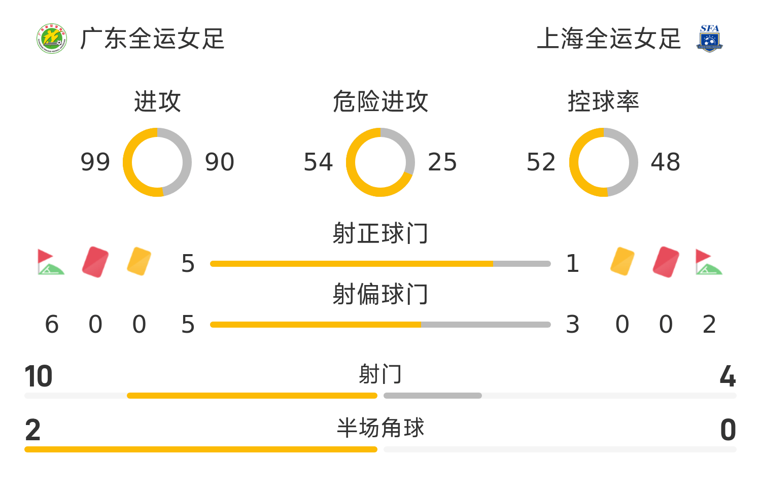 廣東全運女足首發(fā)陣容:12-彭詩夢、22-陳巧珠、26-蔣晶、24-夏樂驕(71’17-羅桂平)、7-張子媚、13-李晴潼、21-陳秀冰、10-劉宣池、11-袁叢、20-烏日古木拉、37-歐陽玉環(huán)(59’9-譚茹殷)