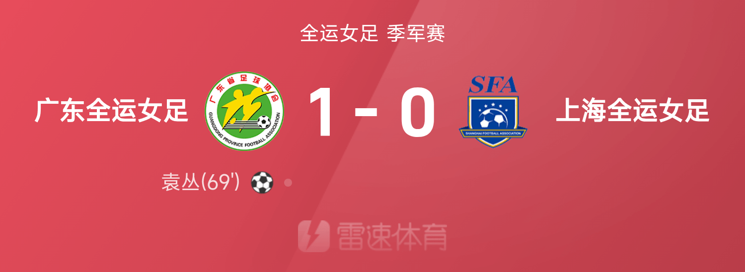 雷速體育11月15日訊 第十五屆全運女足季軍賽,廣東全運女足1-0戰(zhàn)勝上海全運女足。全場比賽,袁叢在第69分鐘破門建功。廣東女足最終獲得了本屆全運會的銅牌,上海女足位列第四。