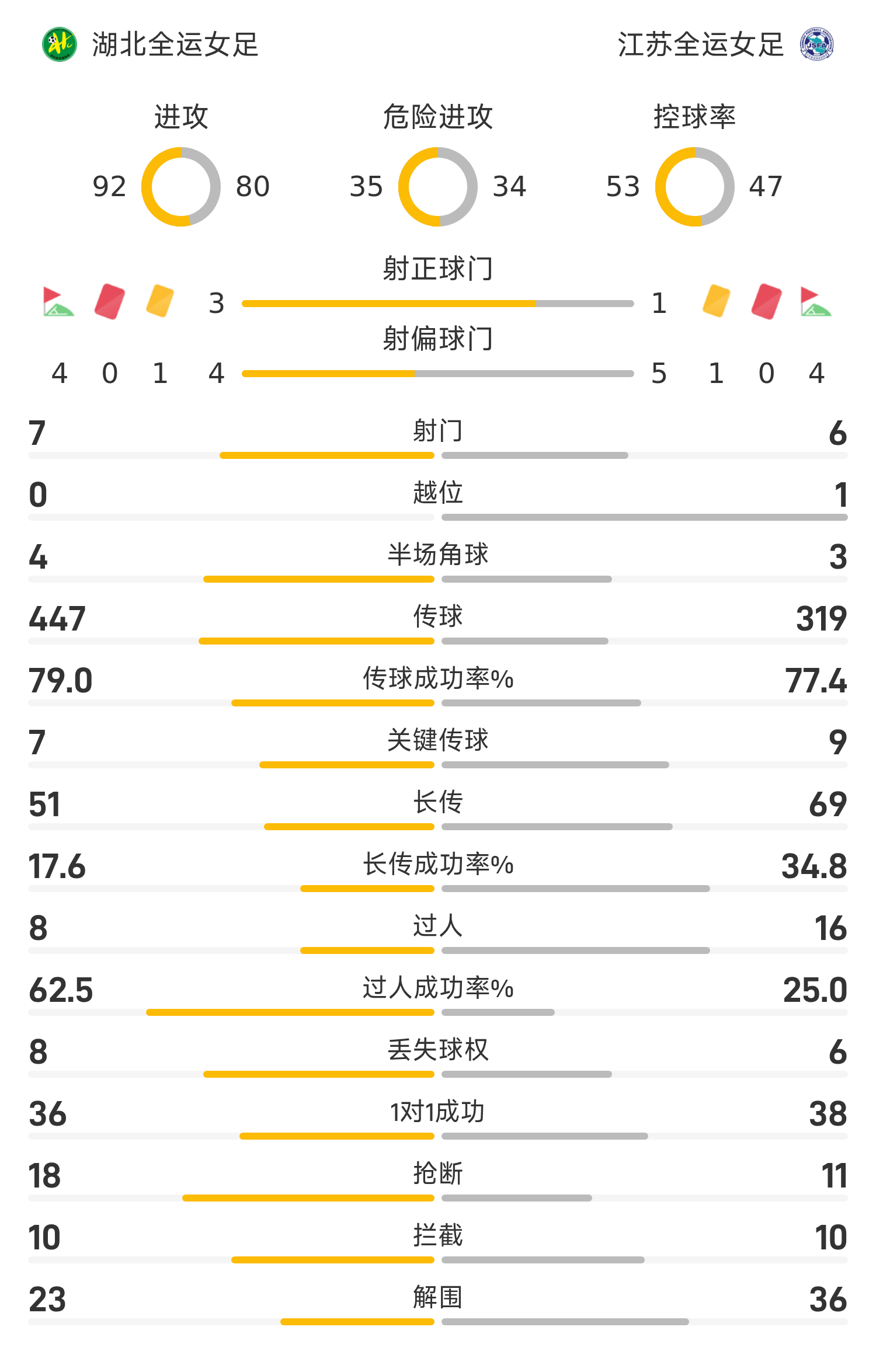 湖北全運(yùn)女足首發(fā)陣容:22-陳晨、5-吳海燕、15-劉艷秋、13-徐倩倩、37-宋端(68’28-宋菲)、10-姚偉、19-閆琪、18-羅濼(60’21-代陳穎)、7-王霜、9-呂悅云(60’26-姜晨璟)、27-鄧夢(mèng)曄(82’8-李婷婷)