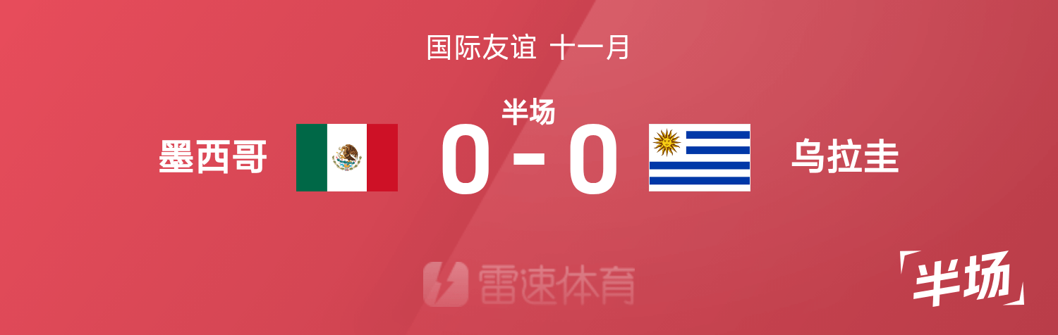 雷速體育11月16日訊 25賽季國(guó)際友誼十一月,墨西哥迎戰(zhàn)烏拉圭。半場(chǎng)戰(zhàn)罷,雙方比分暫為墨西哥0-0烏拉圭。