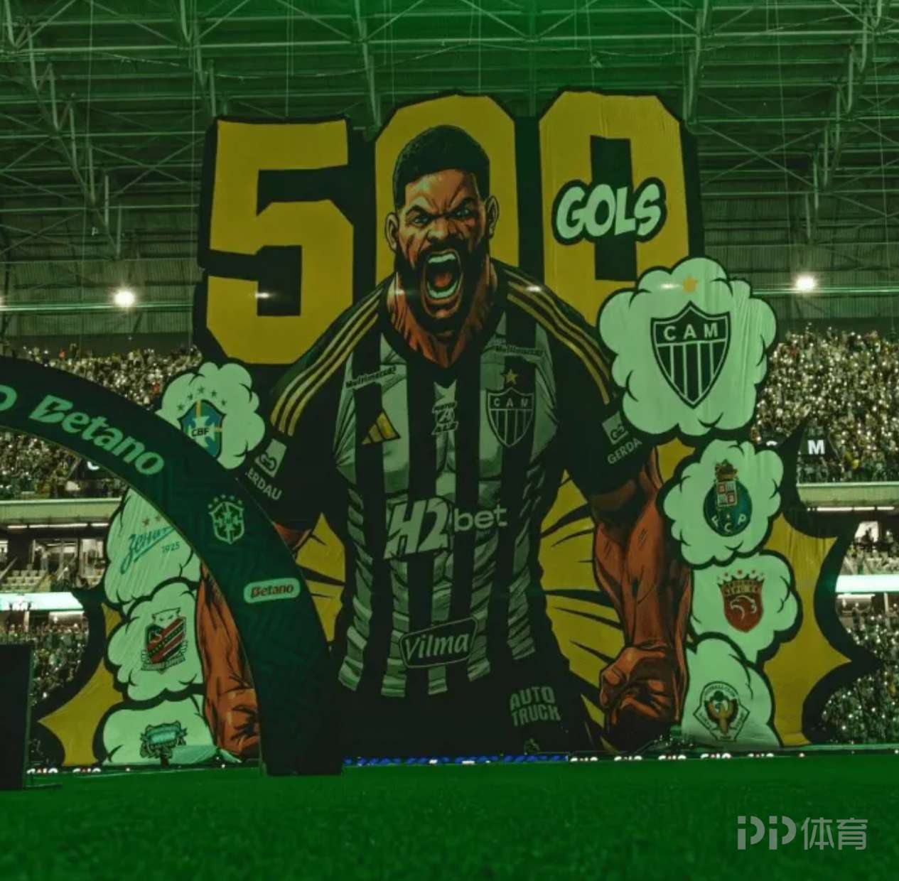 本月初對(duì)陣巴伊亞的巴甲聯(lián)賽中,米內(nèi)羅競(jìng)技前鋒胡爾克攻入了職業(yè)生涯第500球。下一個(gè)主場(chǎng)比賽,球迷為“綠巨人”制作了巨幅海報(bào)。
