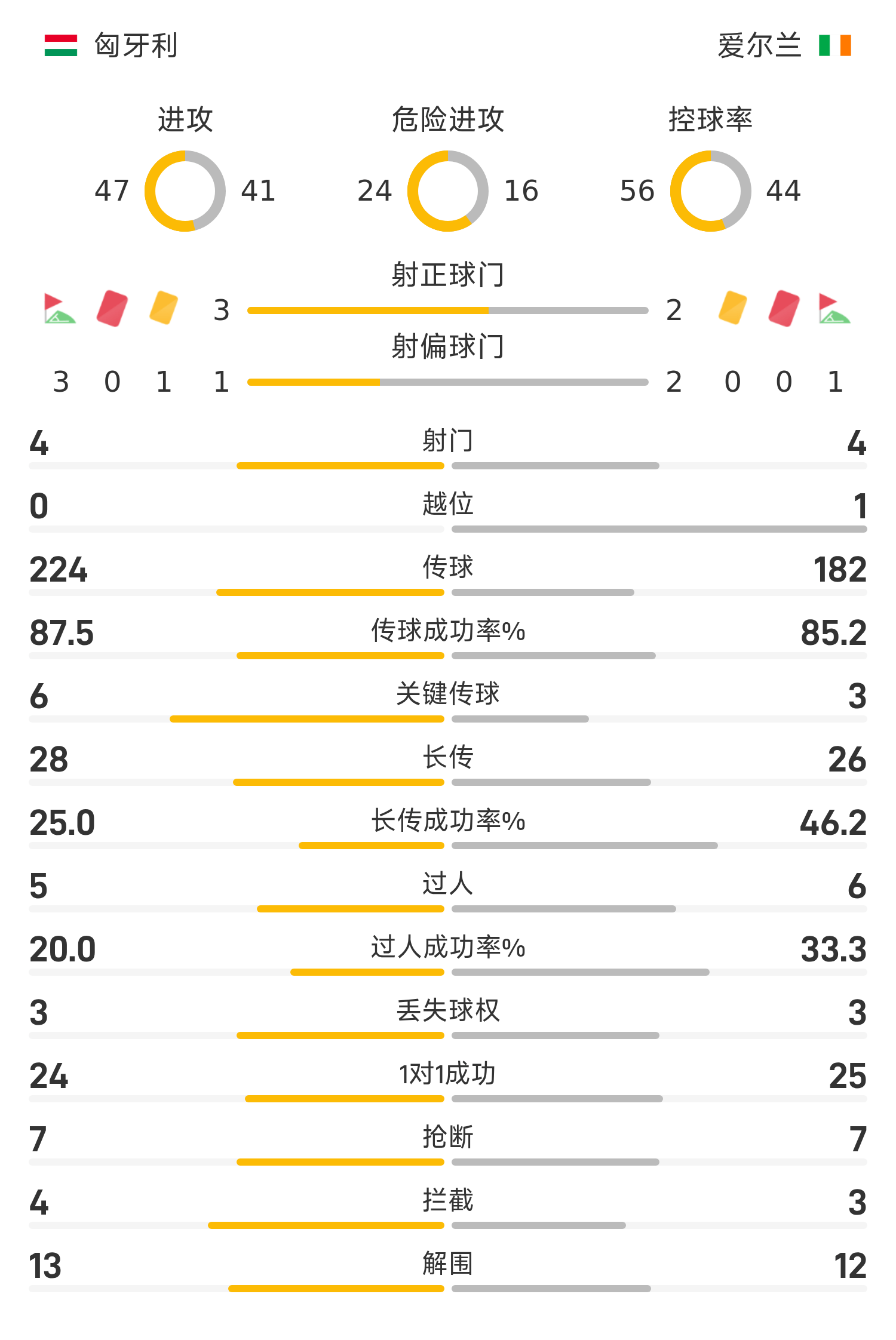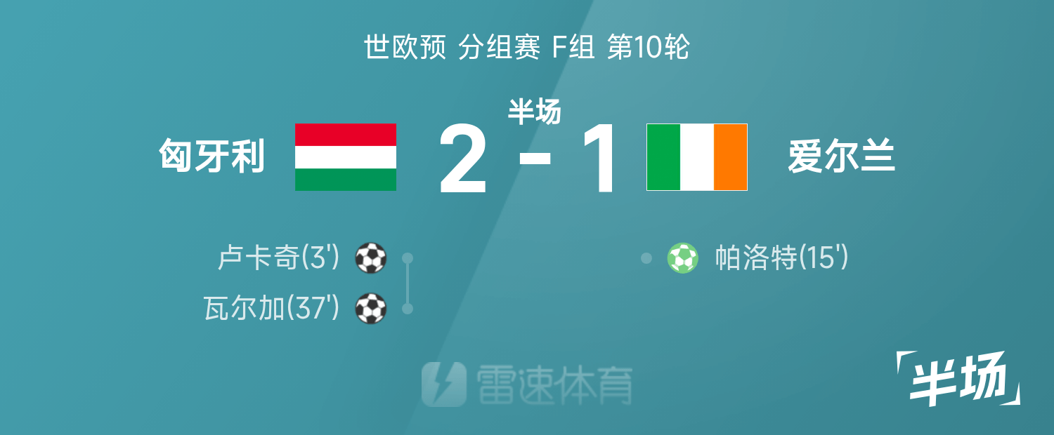 雷速體育11月16日訊 26賽季世歐預(yù)分組賽F組第10輪,匈牙利迎戰(zhàn)愛(ài)爾蘭。半場(chǎng)戰(zhàn)罷,雙方比分暫為匈牙利2-1愛(ài)爾蘭,帕洛特、瓦爾加、盧卡奇破門建功。