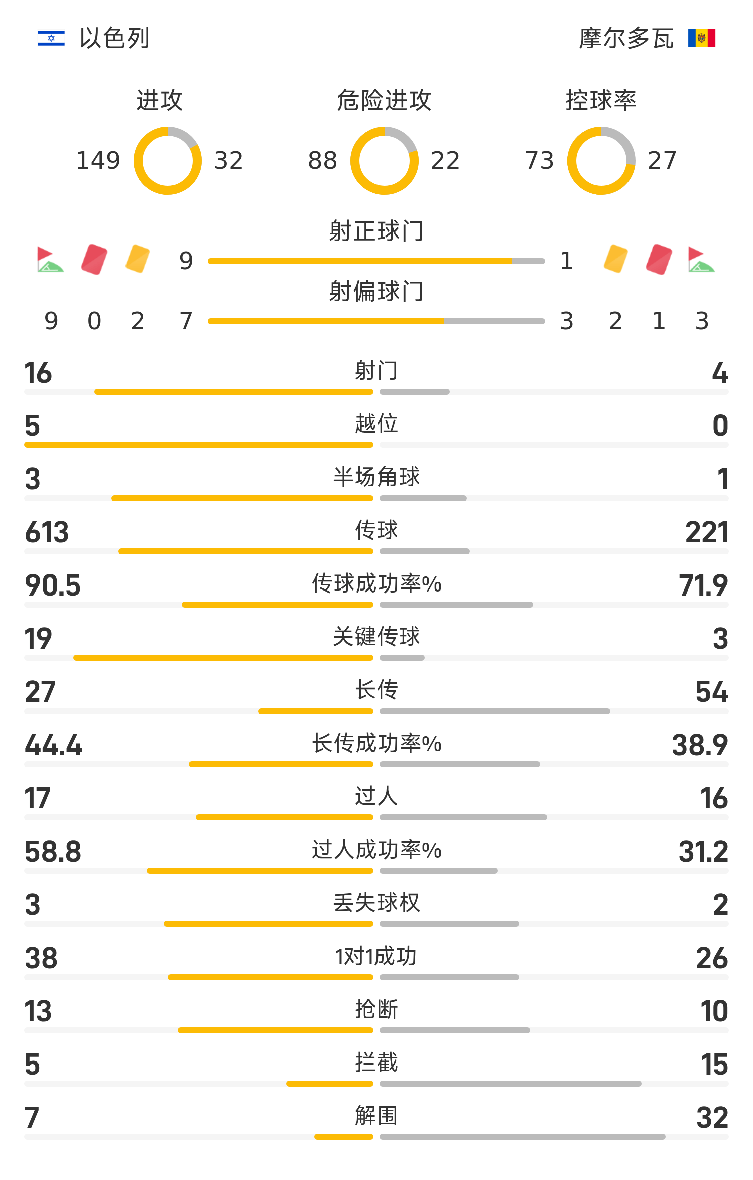 85’佩雷斯禁區(qū)前抽射遠(yuǎn)角破門,以色列3-1摩爾多瓦