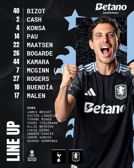 維拉首發(fā):40-比佐、22-馬特森、2-卡什、4-孔薩、14-保-托雷斯、26-博加德、27-摩根-羅杰斯、44-卡馬拉、10-布恩迪亞、7-麥金、17-馬倫