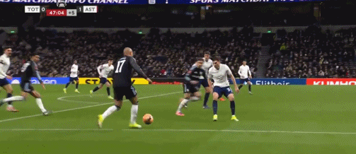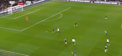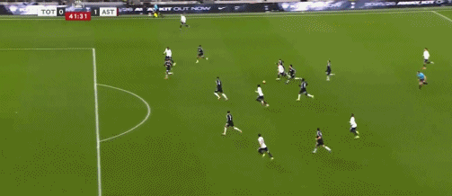第45+2分鐘,布恩迪亞腳后跟做球,羅杰斯破門,維拉2-0熱刺