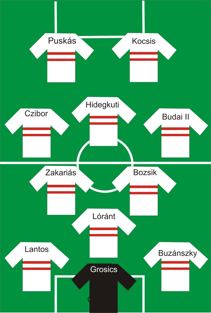 在那個(gè)年代,匈牙利隊(duì)的水平非常高。他們自從1952年5月輸給蘇聯(lián)隊(duì)以來,已經(jīng)保持了兩年的不敗紀(jì)錄。他們的球風(fēng)非常先進(jìn),主教練謝拜什要求場(chǎng)上的每個(gè)球員都要?jiǎng)偃嗡械奈恢?,無(wú)論進(jìn)攻還是防守時(shí),所有人都要參與。他把這種球風(fēng)稱作是“社會(huì)主義足球”,其實(shí)就是古早版本的“全攻全守”。