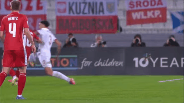 22’扎萊夫斯基反擊中左腳低射遠角稍稍偏出,波蘭仍0-0馬耳他