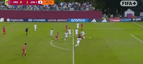 第4分鐘,瀨口大翔傳中,麥吉頭球破門,U17日本1-0朝鮮U17