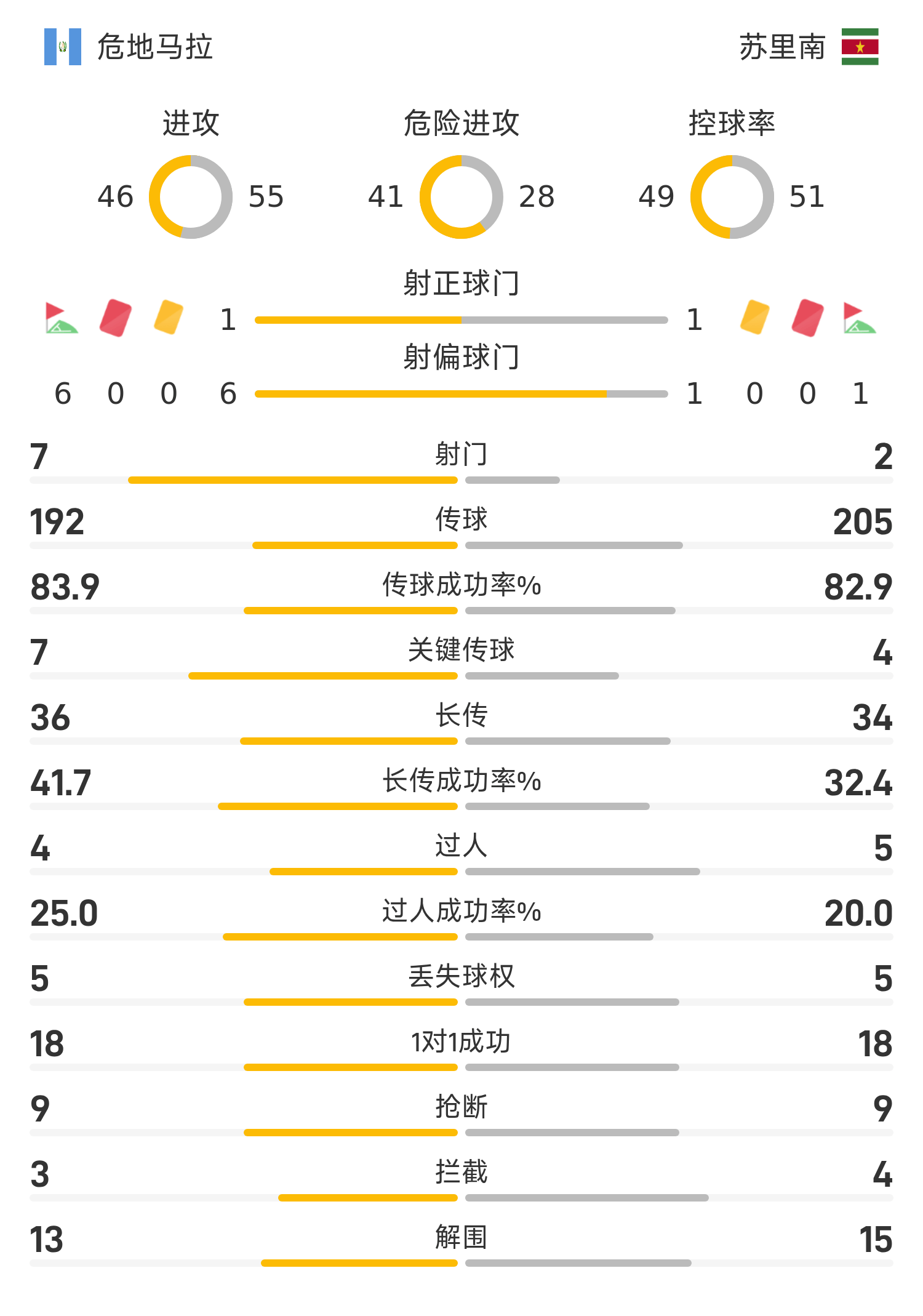 雷速體育11月19日訊 26賽季世中北美預(yù)第三階段A組第6輪,危地馬拉迎戰(zhàn)蘇里南。半場戰(zhàn)罷,雙方比分暫為危地馬拉0-0蘇里南。