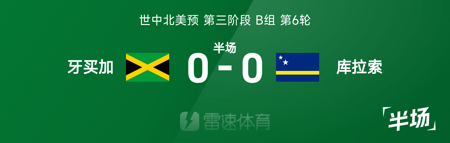 雷速體育11月19日訊 26賽季世中北美預第三階段B組第6輪,牙買加迎戰(zhàn)庫拉索。半場戰(zhàn)罷,雙方比分暫為牙買加0-0庫拉索。