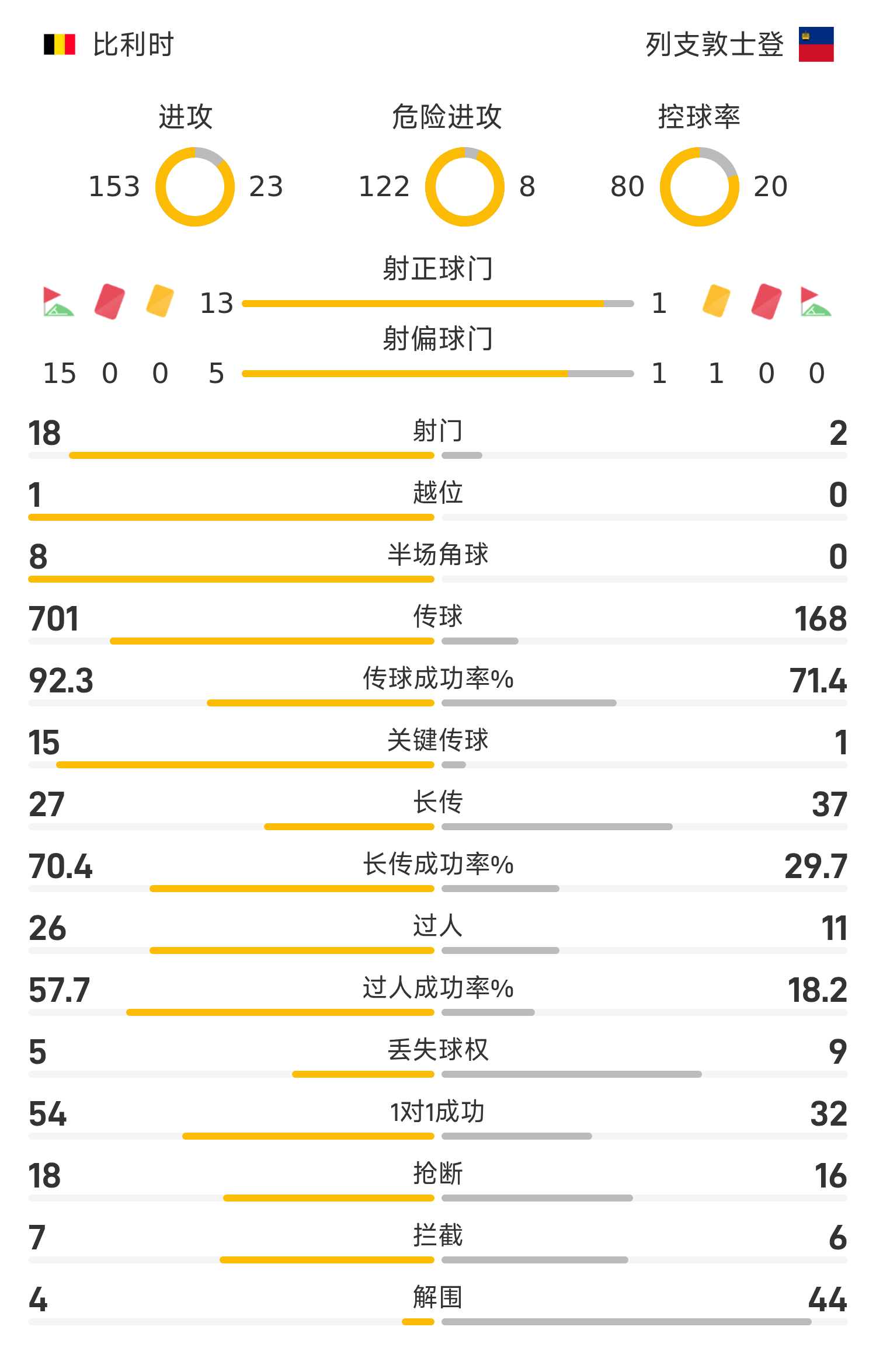 41’多庫前場斷球突入禁區(qū)射門命中,比利時3-0列支敦士登