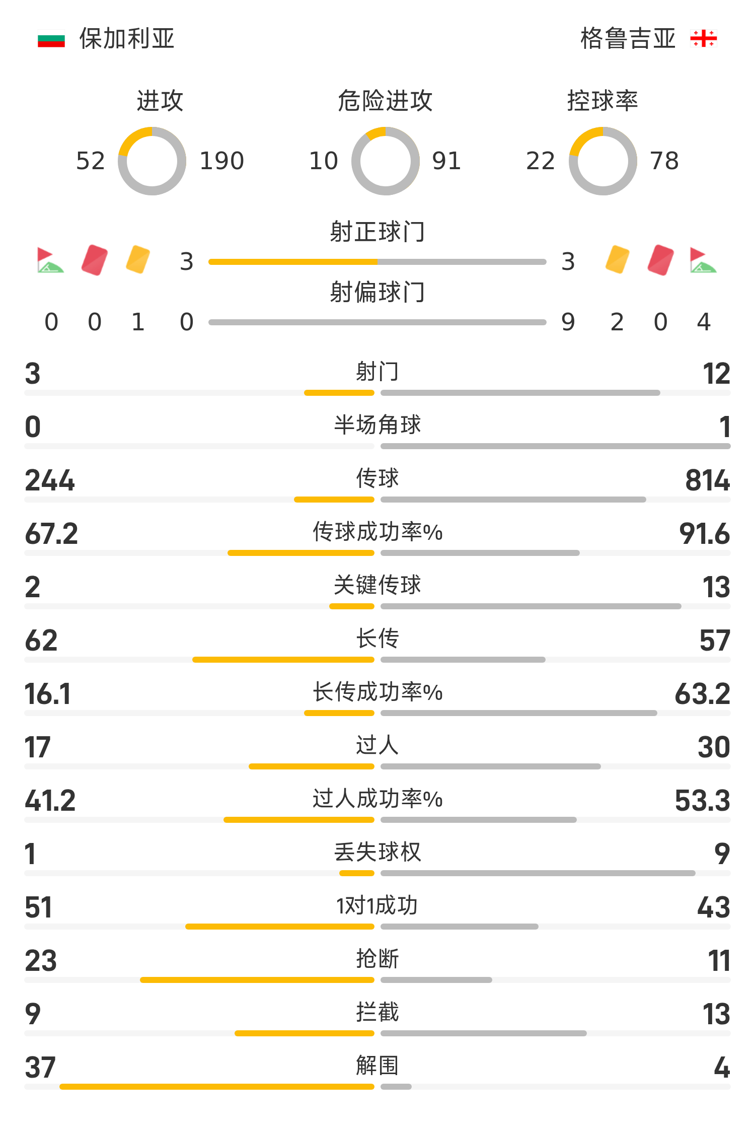 保加利亞首發(fā)陣容:1-米托夫、15-維爾科夫、5-K.迪米特洛夫、2-佩特羅夫、20-格奧爾基耶夫、7-魯塞夫(76’17-明切夫)、10-Z.迪米特洛夫(60’9-尼科洛夫)、4-格魯夫、14-克拉斯特夫(89’18-羅喬切夫)、22-斯托亞諾夫(76’23-肖波夫)、11-德斯波多夫(60’16-彼得科夫)