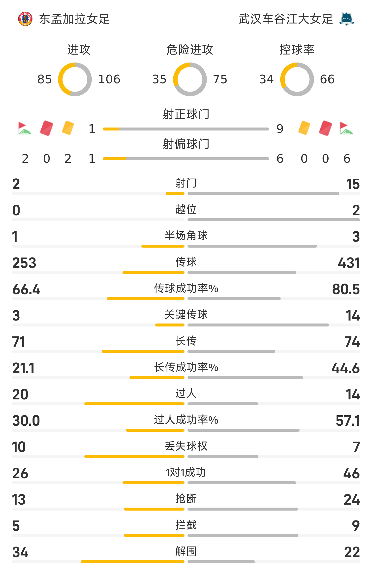 武漢車(chē)谷江大女足首發(fā)陣容:29-丁旋、15-劉艷秋、18-馬君、28-宋菲(46’12-唐涵)、26-姜晨璟、13-徐倩倩、20-金蕙利、7-王霜(85’30-汪倩倩)、10-姚偉、27-鄧夢(mèng)曄(74’21-代陳穎)、19-奧烏蘇(85’36-趙靜宜)