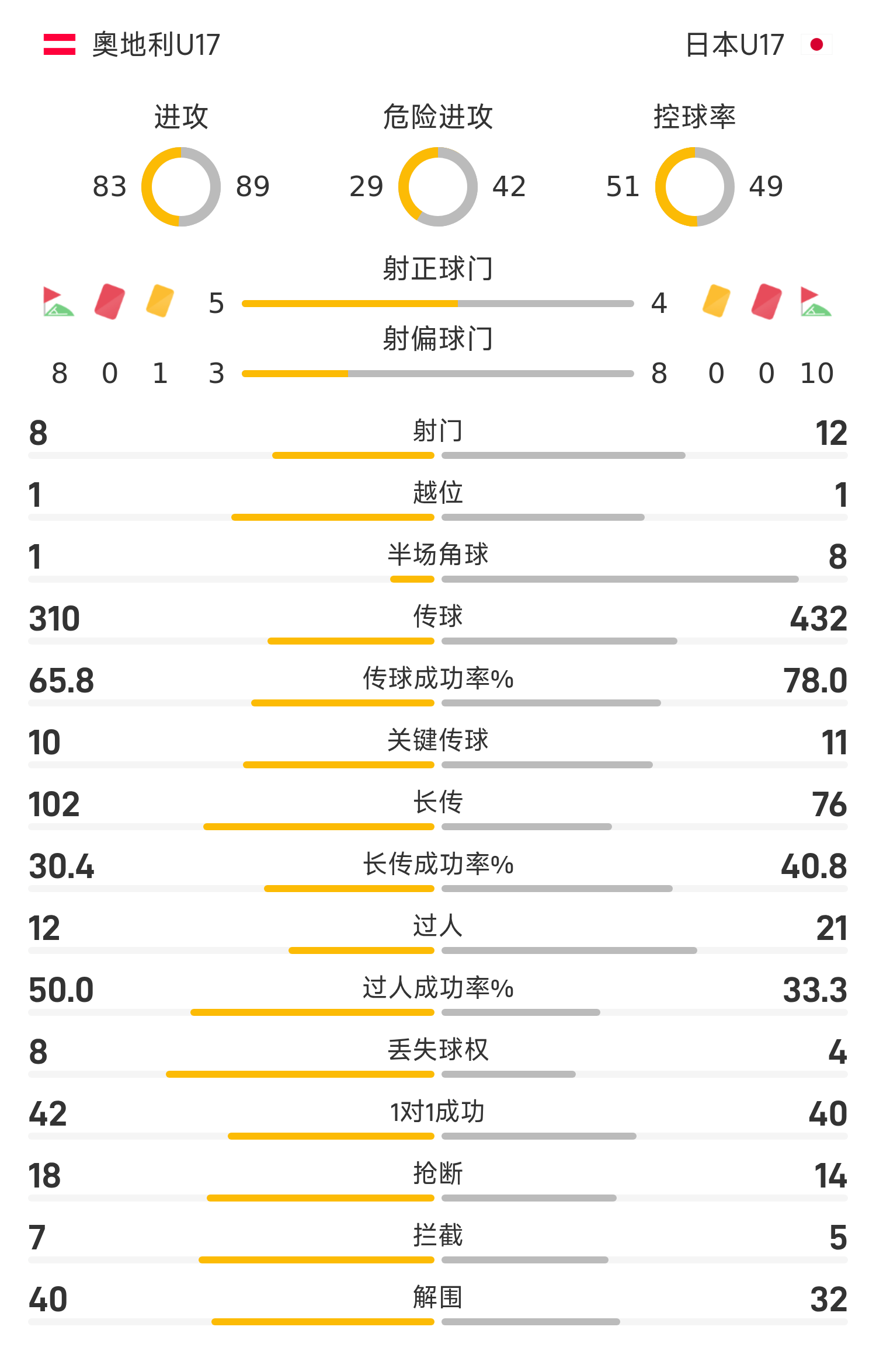 雷速體育11月21日訊 25賽季U17世界杯1/4決賽,奧地利U17隊(duì)1-0戰(zhàn)勝日本U17隊(duì)。全場比賽,莫澤破門建功,德希什庫失點(diǎn)。