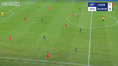 第12分鐘,劉若釩右路橫傳門前,劉浩帆鏟球?yàn)觚?,海?-0領(lǐng)先浙江!