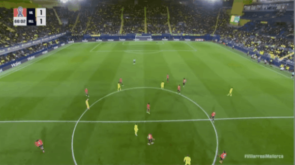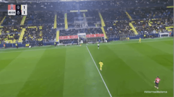 6’莫雷諾門前無人防守搶點墊射破門,比利亞雷亞爾1-0馬略卡