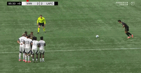 第90+6分鐘,孫興慜任意球直接破門扳平比分,洛杉磯2-2