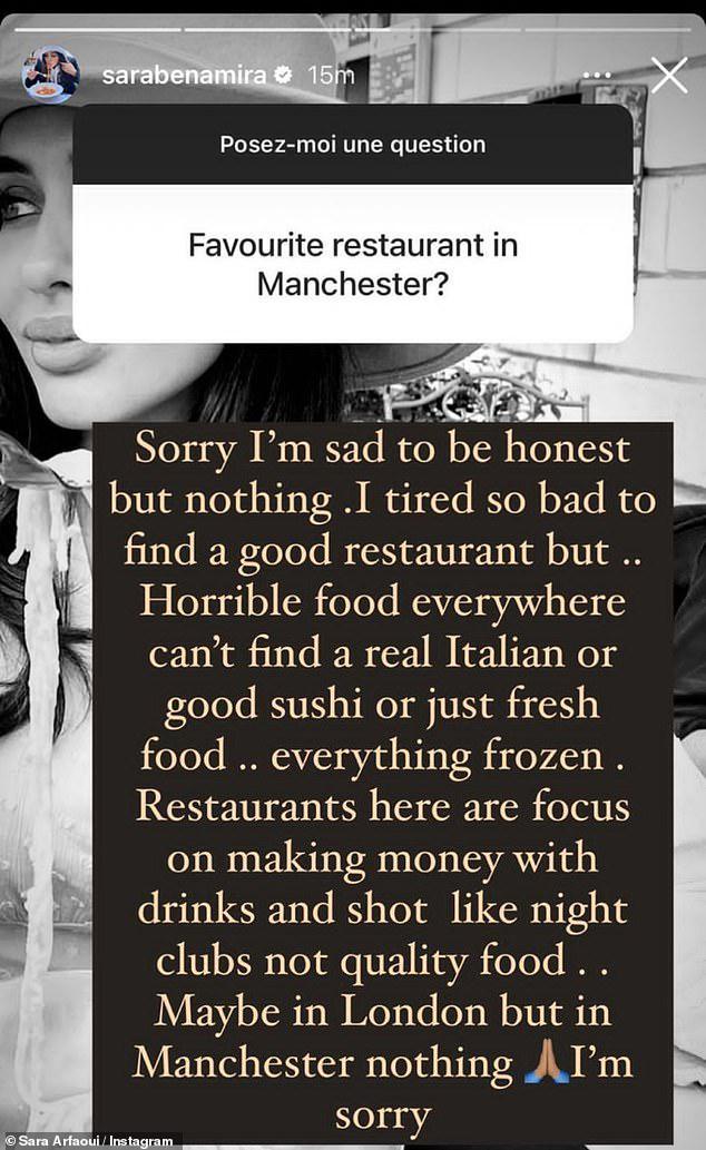 類似的情緒也曾出現(xiàn)于京多安的妻子薩拉-阿爾法烏伊身上。她在2022年10月批評(píng)曼徹斯特餐飲水平,稱找不到“真正的意大利菜、好吃的壽司或新鮮食物,一切都是冷凍的”。她在社媒的限時(shí)動(dòng)態(tài)中寫道:“抱歉,我真的很難過(guò)。我真的很努力地想找一家好餐廳,但到處都是難吃的食物。找不到正宗的意大利餐廳,也找不到好吃的壽司,更找不到新鮮的食材……全是冷凍食品。這里的餐廳都像夜總會(huì)一樣,只顧著賣酒水賺錢,根本不注重食物品質(zhì)。也許倫敦有,但曼徹斯特什么都沒(méi)有。抱歉?!?/p>