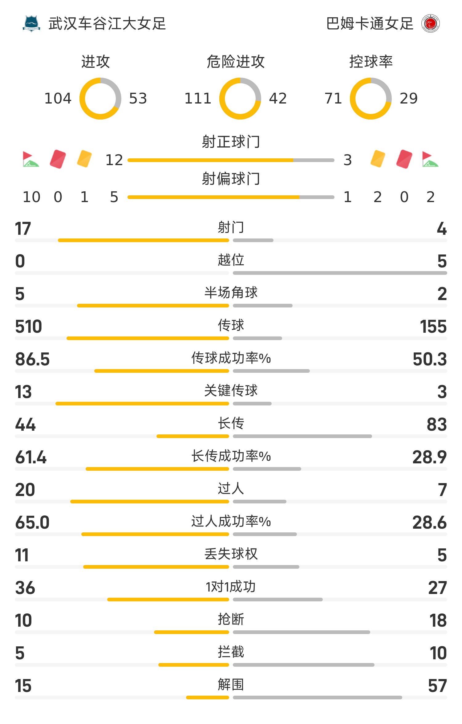 武漢車谷江大女足首發(fā)陣容:29-丁旋、20-金蕙利、18-馬君、28-宋菲、46-黃寶瑩(73’36-趙靜宜)、13-徐倩倩、21-代陳穎(54’23-秦曼曼)、26-姜晨璟(63’47-杜健群)、12-唐涵、27-鄧夢曄、19-奧烏蘇