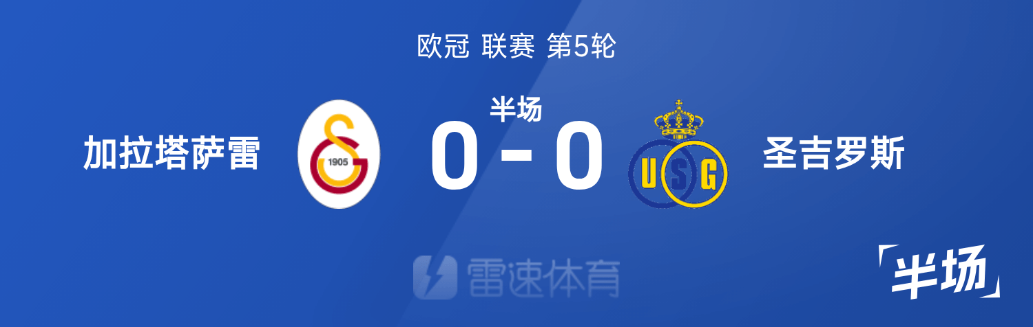 雷速體育11月26日訊 25/26賽季歐冠聯(lián)賽第5輪,加拉塔薩雷迎戰(zhàn)圣吉羅斯。半場(chǎng)戰(zhàn)罷,雙方比分暫為加拉塔薩雷0-0圣吉羅斯。