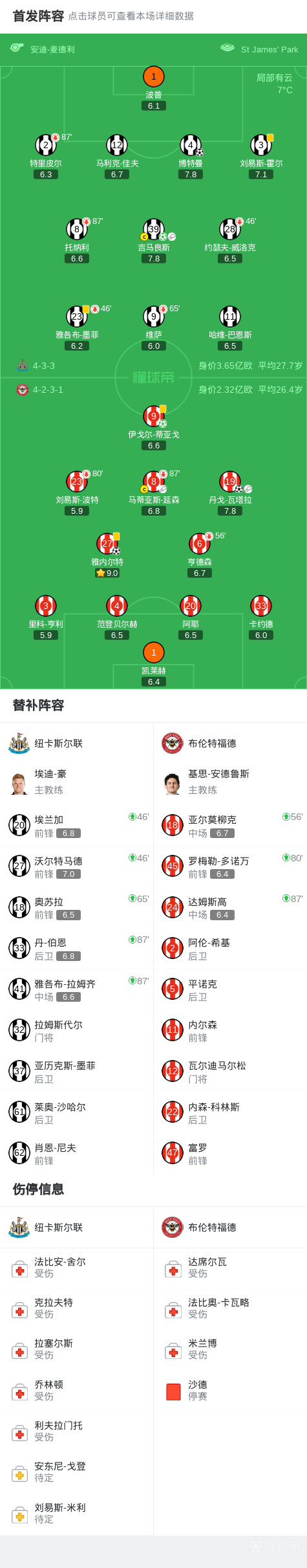 第45分鐘,墨菲禁區(qū)手球,蒂亞戈主罰打進,紐卡1-2布倫特福德