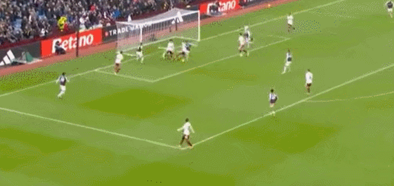 第36分鐘,?!ね欣姿菇麉^(qū)外左側(cè)斜傳禁區(qū),前點(diǎn)廷伯蹭了一下,阿森納整條后防線都沒(méi)能將球解圍,皮球來(lái)到后點(diǎn),卡什插上凌空抽射!打穿拉亞襠下破門!維拉1-0領(lǐng)先阿森納