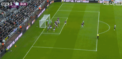 第31分鐘,吉馬良斯角球直接罰進(jìn)球門,紐卡1-0領(lǐng)先