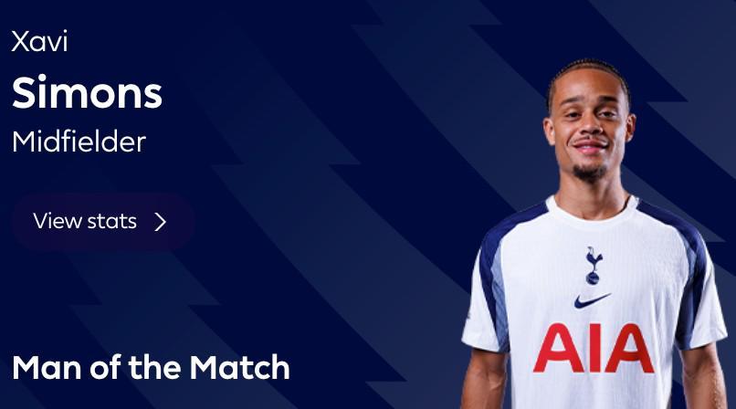 北京時間12月7日,在英超第15輪的比賽中,哈維-西蒙斯貢獻一傳一射并斬獲自己熱刺生涯的處子球,最終幫助熱刺在主場2-0擊敗了布倫特福,賽后這位荷蘭球星也被球迷投票選為了英超官方本場比賽的最佳球員。