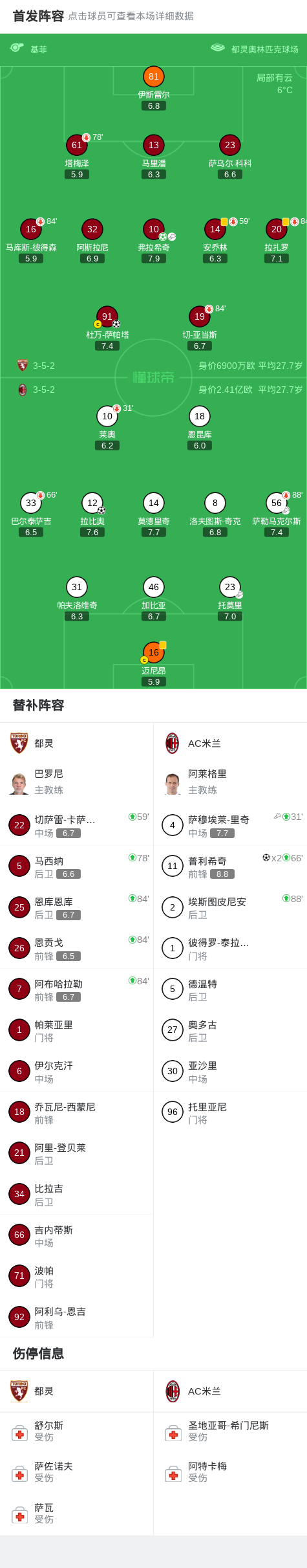 北京時間12月9日3:45,意甲第14輪繼續(xù)進(jìn)行,AC米蘭作客都靈奧林匹克球場挑戰(zhàn)都靈,本場主裁判為基菲。上半場,托莫里手球送點(diǎn),弗拉希奇主罰點(diǎn)球命中后又助攻薩帕塔破門,緊接著,拉比奧重炮世界波扳回一城,萊奧傷退。下半場,普利希奇替補(bǔ)登場連下兩城力挽狂瀾。最終,米蘭讓二追三3-2逆轉(zhuǎn)都靈。