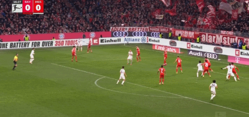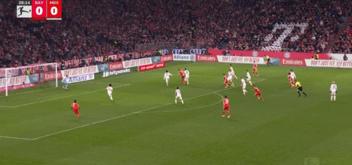 第29分鐘,格納布里送助攻,卡爾破門,拜仁1-0美因茨