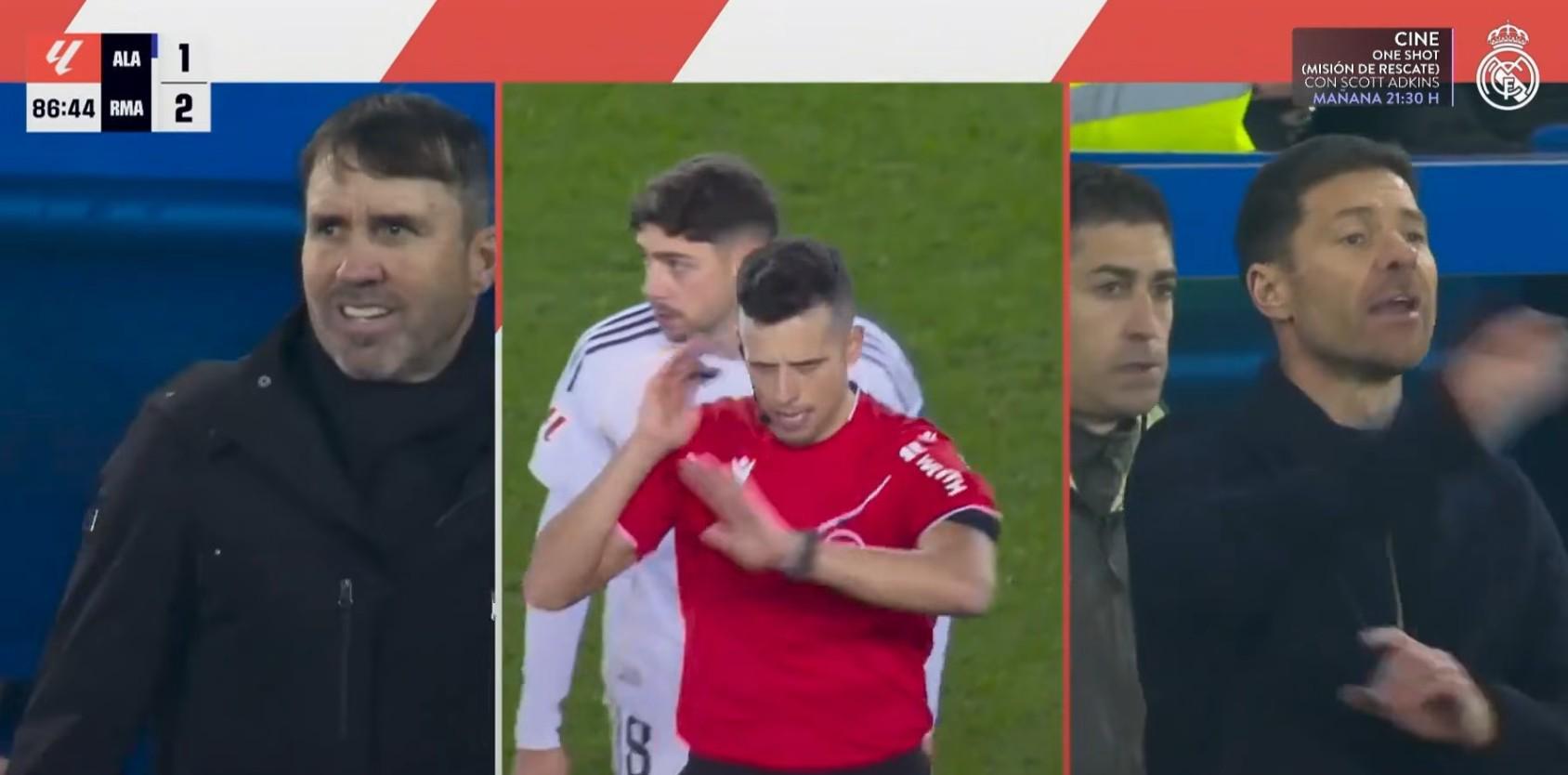 “注意看主裁加西亞唇語:當(dāng)鏡頭給到他、庫德和阿隆索三人時,他對皇馬隊長巴爾韋德說:“(強(qiáng)度)不夠?!?他們心知肚明。這就是他們不吹罰點(diǎn)球的借口。他再清楚不過了?!?/p>